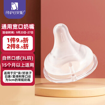 现在,您可以摆脱挑选奶瓶奶嘴时的困扰了。安配京东自营旗舰店提供了您所需要的所有类型和规格的奶瓶奶嘴,并通过顾客评测和产品极佳的质量树立了良好的口碑。快来照顾您的孩子,购买安配品牌奶瓶吧!