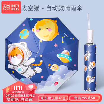 1. 甜甜仔自动开关3折雨伞超轻便晴雨两用伞 折叠非智能清新小清新普通款 女式蓝色(5月售价101元,降至7月的88元)