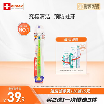 2. ELMEX苏菲亚儿童牙刷,适合3-6岁儿童使用,短柄便于握持,优质牙毛柔软细致。